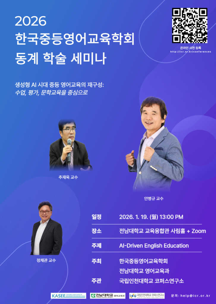 - 주최: 국립인천대학교 글로벌창의영재교육연구실(http://icr.or.kr/dgcergt), 한국중등영어교육학회