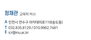 - 본 프로그램과 관련하여 문의할 사항이 있는 경우, 공식 이메일(icr@inu.ac.kr) 또는 공식 문자 메시지 전용 연락처(010-9962-7481)를 통해 문의해 주시기 바랍니다. 문자 메시지 전용 연락처는 업무용으로, 음성 통화 연결이 어려운 점 양해 부탁드립니다.